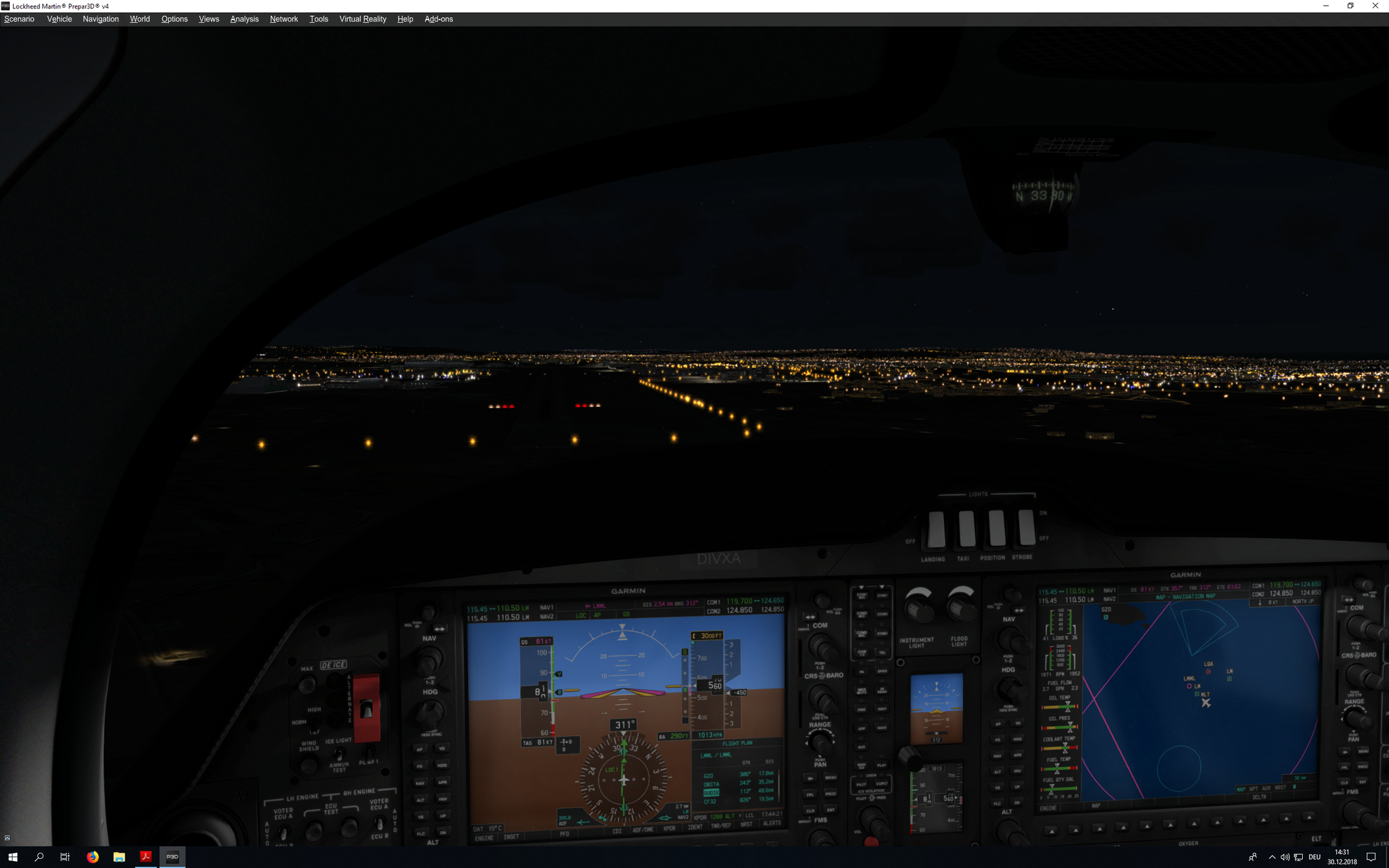 Urs Zwyssig Geschrieben 30. Dezember 2018 Geschrieben 30. Dezember 2018 Hier noch einige Bilder, mit der DA-62 unterwegs in LMML. Die Insel erscheint auch nicht mehr im Garmin 1000 als Insel, GPS von P3D. Anflug auf RWY 31 bei Tag. Anflug bei Nacht, ohne RWY Lights. Auf der RWY 31. Gruss Urs Zitieren