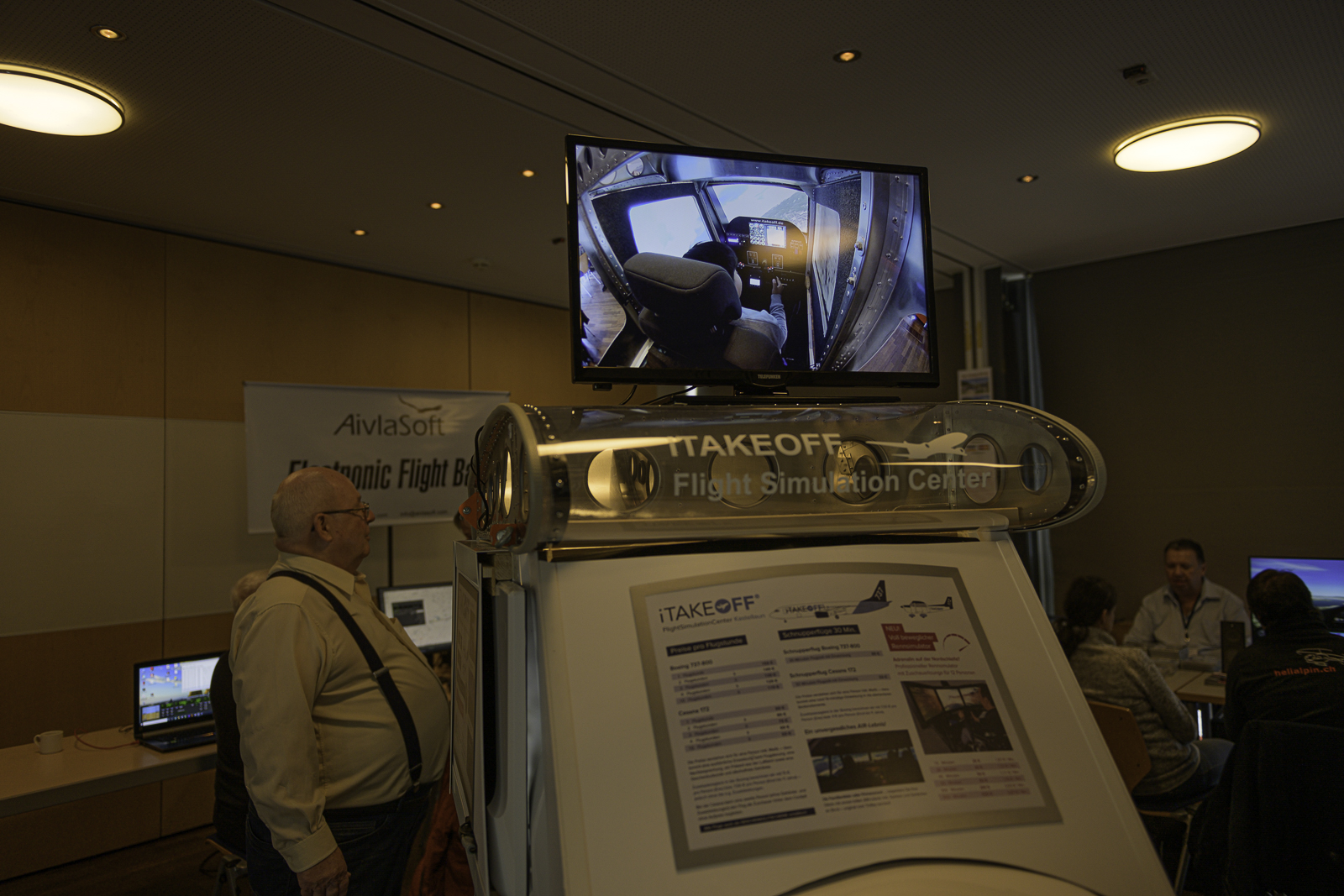 Pascal Friedli Geschrieben 9. November 2019 Geschrieben 9. November 2019 (bearbeitet) Guten Morgen und herzlich willkommen zum Flightsim Weekend 2019 in Hergiswil! Nach einem kalten Start im Morgengrauen sind jetzt alle am Aufbauen. Und da sich das Flightsim Weekend heuer zum 15. Mal jährt, gibt's von der vACC auch die göttliche Segnung (=Heiligenschein): Ich bereite mich auf die Reportage vor: Martin bereitet sich auf den ersten Flug vor: PREFLIGHT CHECKLIST: Kaffemaschine: ON Kaffebohnen: AUFGEFÜLLT Zucker: VORHANDEN Gipfeli: GEHOLT Butter: KALTGESTELLT Andere fliegen eher tragische Flüge nach: Kartendarstellung, mit leichter Rechts-Neigung Swiss uan feif, Rönnwei tu eit, Wind tu for, seven nots, cliird for teikoff. Da gehen mir die Augen über, sowas Geiles hab ich im Leben noch nicht gesehen: Fliegen mit Fliegerbrille: Die Organisatoren: Immer ein Publikumsmagnet: Die Vorträge. Breitband-Fliegerei: Bert Groner vom FS Magazin beim Vortrag... ...über die Geschichte der Flugsimulation am PC. Random Inpressions: Auch die Kleinsten... ...interessieren sich für die Flieger: So, damit endet die Berichterstattung vom Samstag. Gleich geht's weiter mit den Fotos vom Sonntag! Keep the Blue Side Up! Pascal Bearbeitet 12. November 2019 von Pascal Friedli 8 12 Zitieren